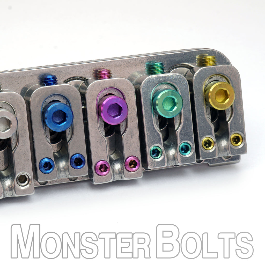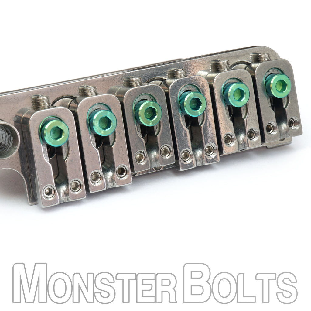 Bring custom-shop personality to your VegaTrem VT1 Ultra Trem with these premium anodized titanium saddle mounting screws. Designed exclusively for the VT1 system, these screws secure each saddle to the tremolo plate while adding bold, boutique color options.